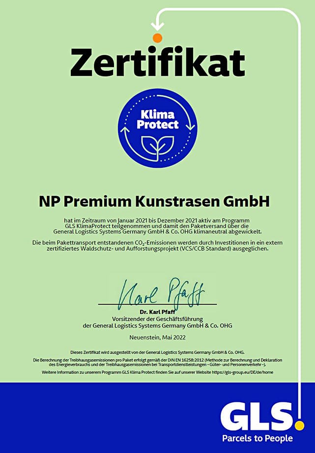 Ein nachhaltiger Umgang mit Ressourcen ist für uns unerlässlich. Bei Premium-Kunstrasen.ch legen wir daher großen Wert auf Kunstrasen, der zu 98 Prozent recycelbar ist. Wir lehnen außerdem die Verwendung von Granulaten und Mikroplastik ab. Jedes Kunstrasen-Modell, das Sie bei uns erwerben können, ist frei von Granulaten.