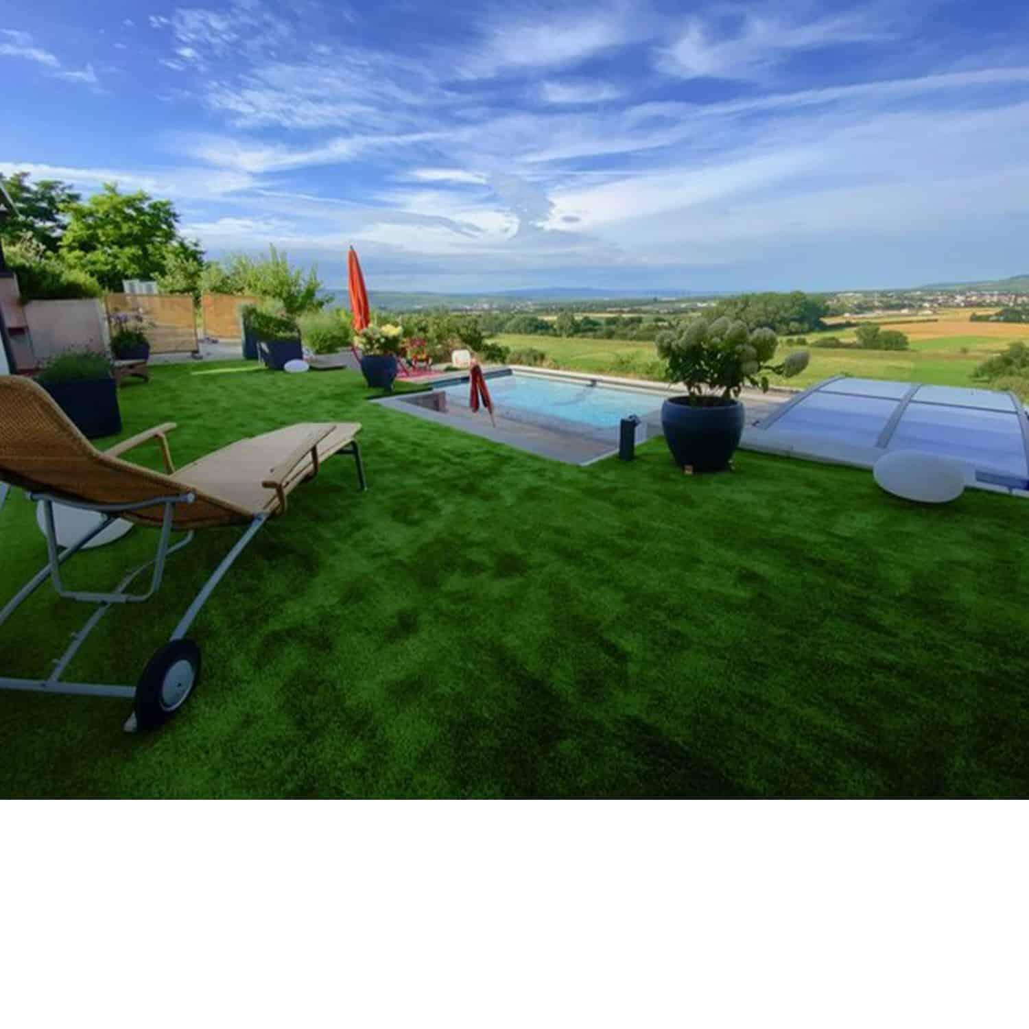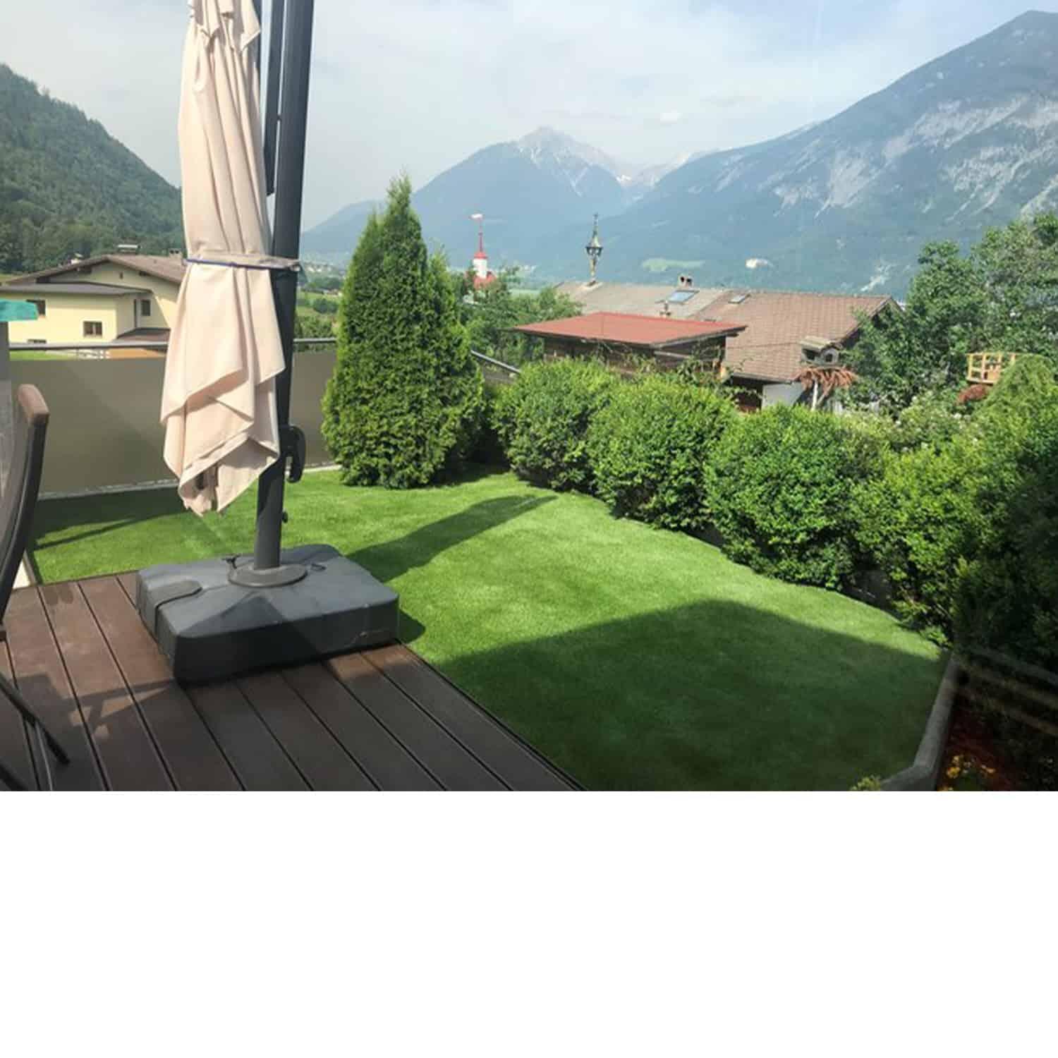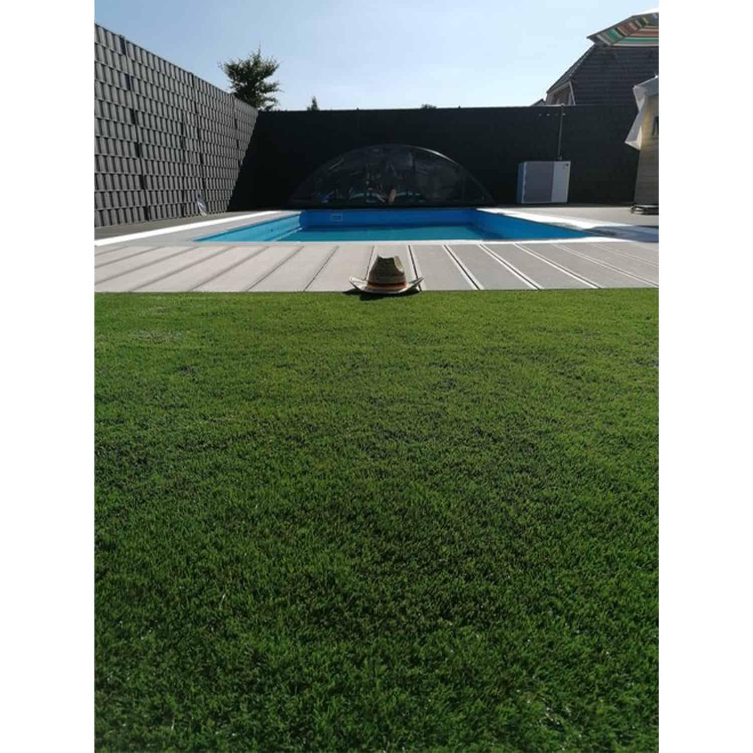 Die Garantie von 10 Jahren bezieht sich ausschließlich auf die UV-Beständigkeit des Kunstrasens.