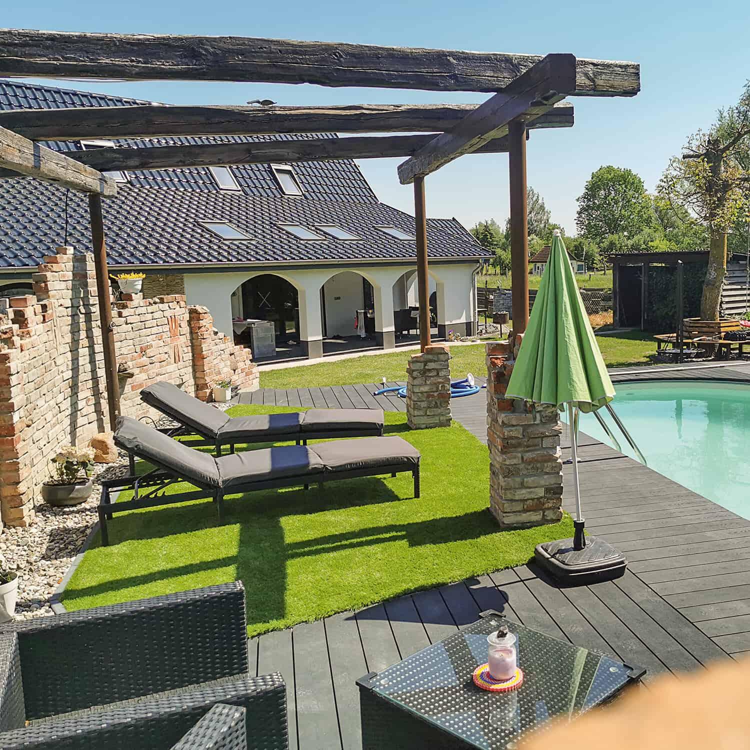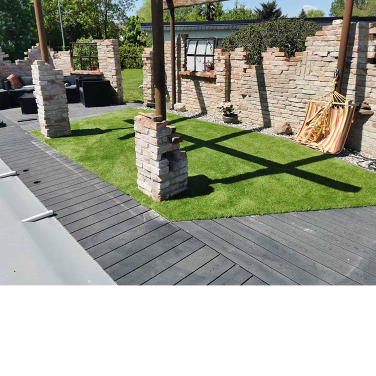 Die Garantie von 10 Jahren bezieht sich ausschließlich auf die UV-Beständigkeit des Kunstrasens.