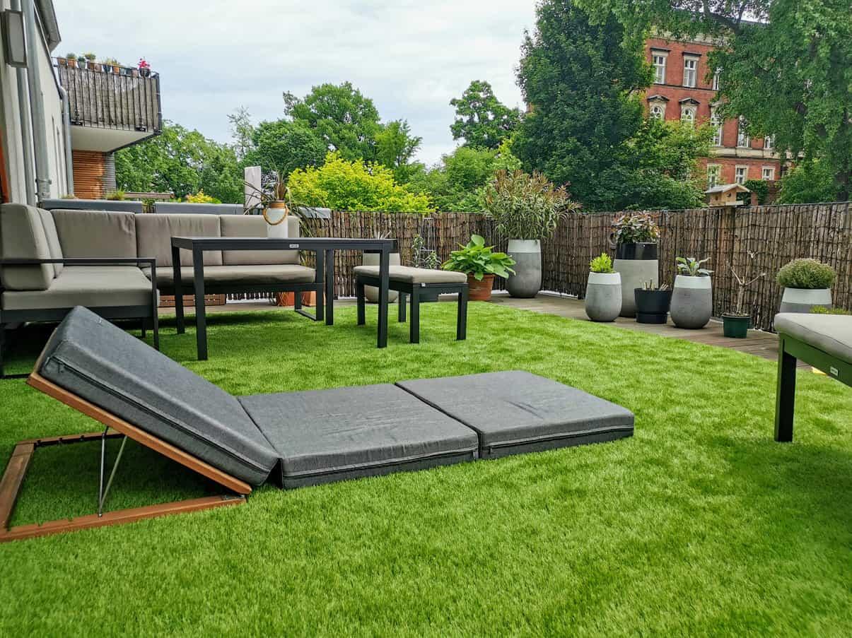 Die Garantie von 10 Jahren bezieht sich ausschließlich auf die UV-Beständigkeit des Kunstrasens.