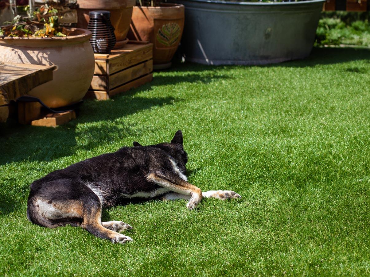 Die Garantie von 10 Jahren bezieht sich ausschließlich auf die UV-Beständigkeit des Kunstrasens.