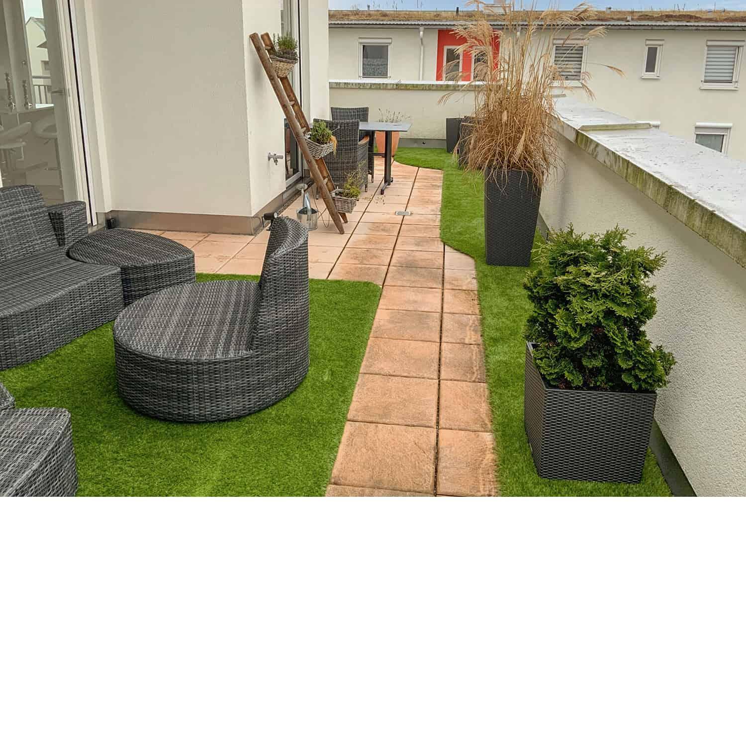 Die Garantie von 10 Jahren bezieht sich ausschließlich auf die UV-Beständigkeit des Kunstrasens.